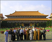 7日下午來自中國嵩山少林寺釋延江、釋延續二位法師、韓國全國武術總會理事俞揚錫、揚州大學體育學院院長童昭崗、湖北武當山教練吳鳴、王勇華…等一行十六人來佛光山參訪。日前參加台中縣大甲媽祖國際觀光文化節活動中之一的「全球華人武術武林大會」表演各種少林拳術交流,由台灣武藝文化研究協會柯明賢、東海大學教授郭應哲、國際佛光會中華總會東海分會會長林秋燕帶隊來山,並由佛光山國際促進會專員依恩法師、永昌法師二人隨行陪同解說。