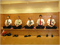 摩門教一行二十三人4日在胡長老〈胡教士ElderBudge〉及吳長老〈吳教士Elder Nelson〉帶領下,至佛香講堂進行宗教交流,由妙閱法師、覺毓法師接待。
